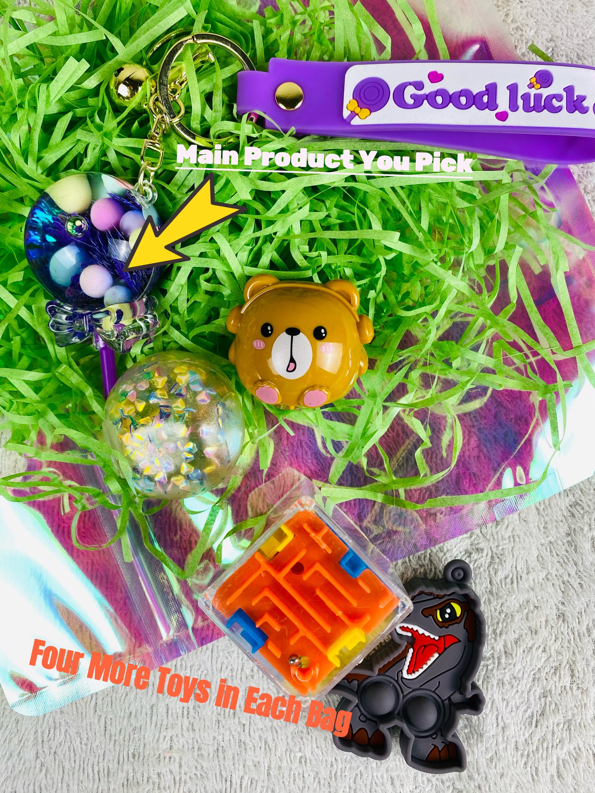 We complete each bag with four extra party favors, randomly selected to add that delightful element of surprise. -